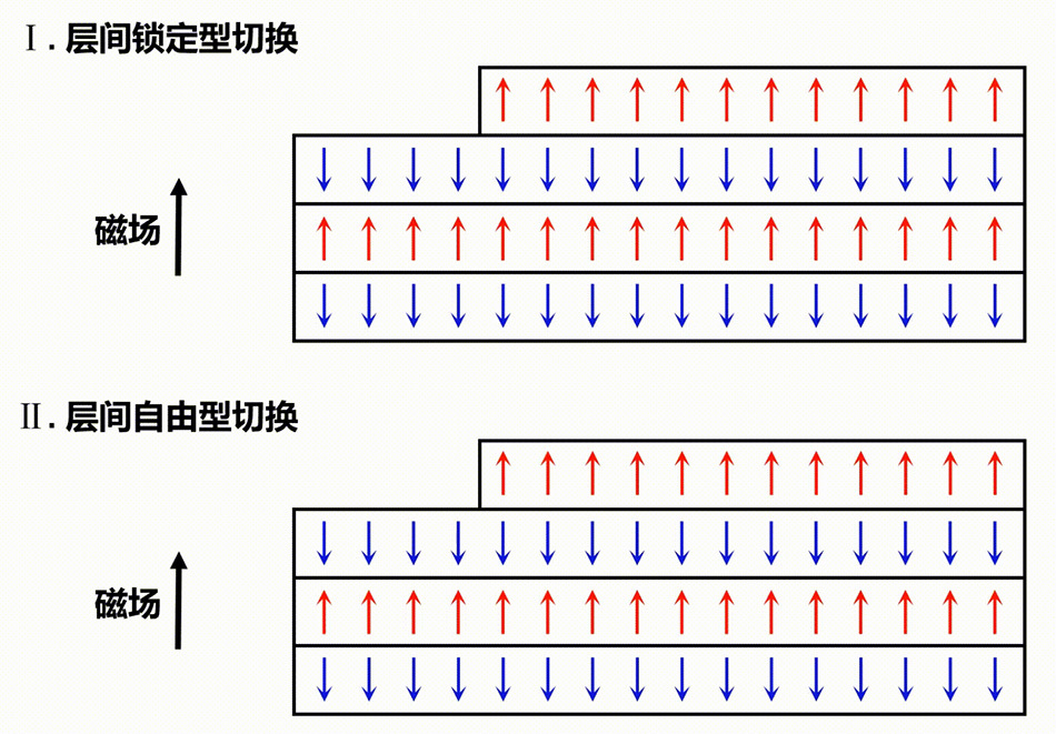 團隊提出了“層共享效應(yīng)”,博士生王占山解釋,其如同“多米諾骨牌”現(xiàn)象,隨后材料中極強的層內(nèi)交換作用驅(qū)動著后續(xù)的橫向疇壁傳播,最終觸發(fā)偶數(shù)層區(qū)域的集體翻轉(zhuǎn)。