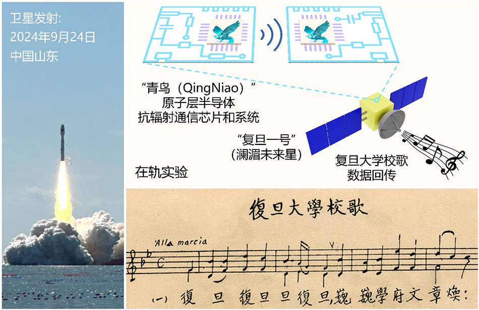 復(fù)旦大學(xué)在原子層半導(dǎo)體太空電子學(xué)領(lǐng)域獲里程碑式突破:壽命更長、功耗更低的抗輻射射頻通信系統(tǒng)“青鳥”將《復(fù)旦大學(xué)校歌》送入太空。