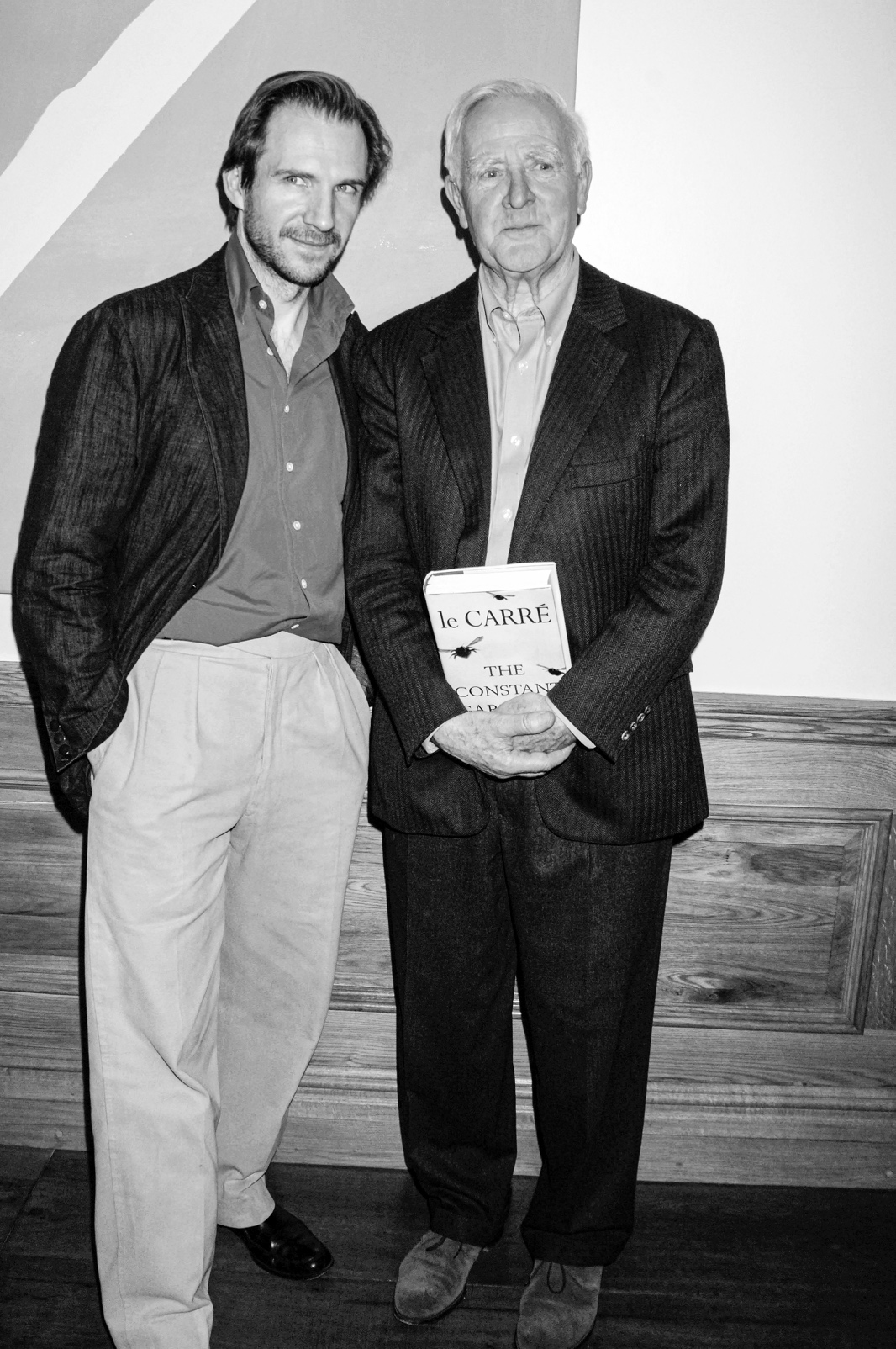 勒卡雷與拉爾夫·費(fèi)因斯,后者在費(fèi)爾南多·梅雷萊斯導(dǎo)演的《永恒的園丁》里扮演賈斯汀。2006年,勒卡雷寫道:“我生命中的一切都不能與這部電影和它掀起的余波相比?!?/p>