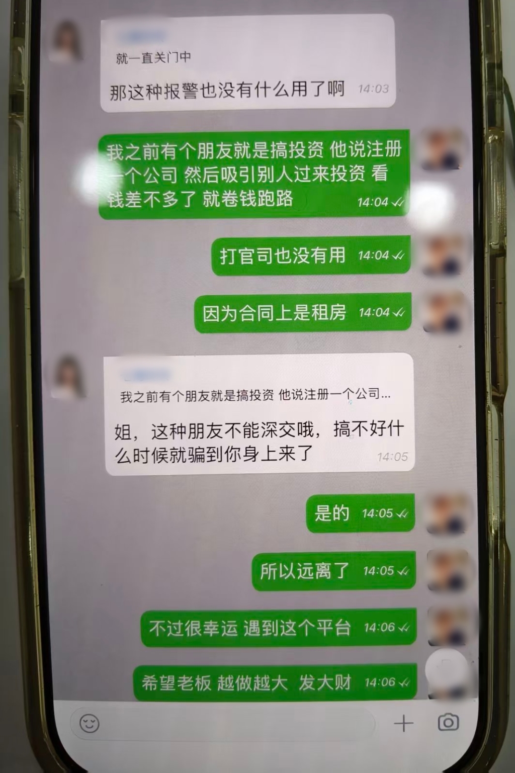 “我肯定沒有被騙,對方給我返利了,你們不要擔心了!”面對民警的到來,周女士堅稱自己沒有被騙,錢是用于正當投資。民警一邊耐心安撫其情緒,一邊細心查看其隨身攜帶的現(xiàn)金和手機信息。