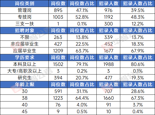 招錄的1899個崗位的各崗位占比數(shù)據(jù)