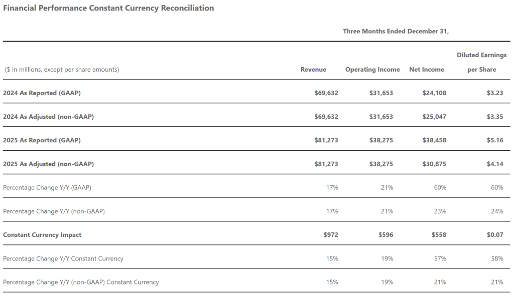 財(cái)報(bào)還顯示,在該財(cái)季,對(duì)OpenAI的投資使微軟的凈利潤(rùn)增加76億美元、EPS提升1.02美元;而在2025財(cái)年第二季度,該投資導(dǎo)致公司凈利潤(rùn)減少9.39億美元、EPS下降0.12美元。
