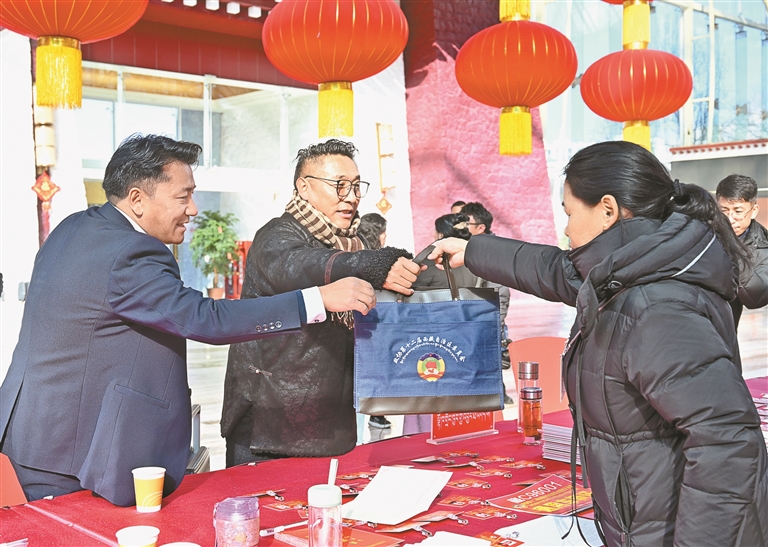 “這是您的會議資料,請拿好。”拉薩飯店報(bào)到處,在工作人員引導(dǎo)下,代表們依次簽到。