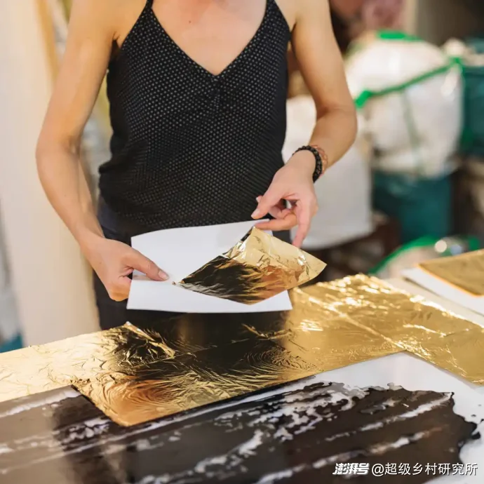 高端酒店的穹頂鎏金裝飾、文旅小鎮(zhèn)的非遺文創(chuàng)擺件、護(hù)膚品里的活性金箔成分,都能看到它的身影。