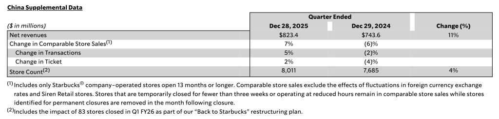 中國(guó)市場(chǎng)補(bǔ)充數(shù)據(jù),來源于星巴克第一財(cái)季財(cái)報(bào)