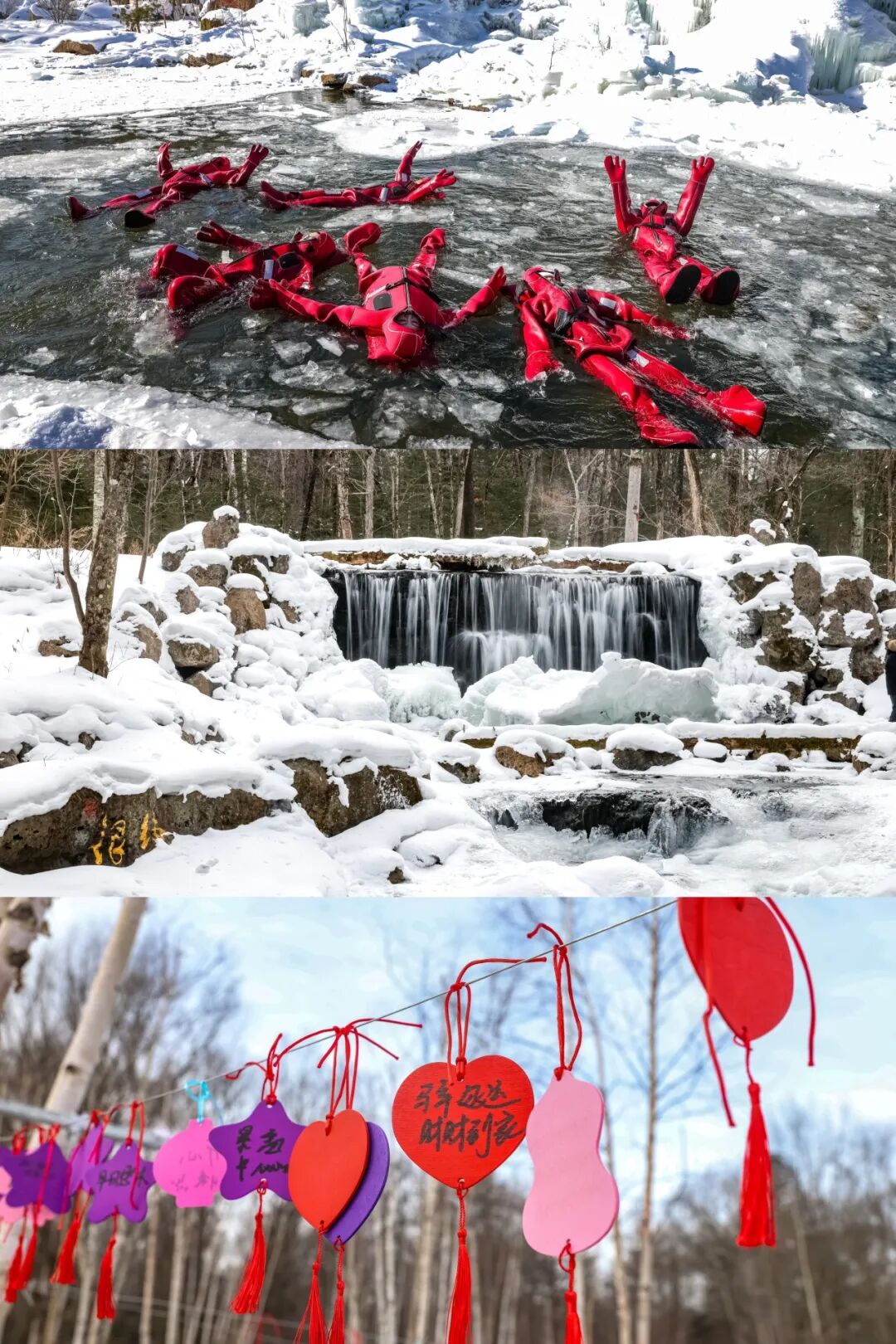 接下來(lái)前往九溪聽(tīng)泉,感受冰與水動(dòng)靜交融的妙趣。溪流在低溫中形成“冰浮”奇觀:冰層晶瑩剔透,其下泉水依然潺潺流動(dòng),水聲清越。還可換上專(zhuān)業(yè)防水服,在指導(dǎo)下嘗試仰躺于天然礦泉活水之上的“冰浮體驗(yàn)”。漂浮于冰泉之中,與溪流融為一體,感受身體與自然的深度對(duì)話。