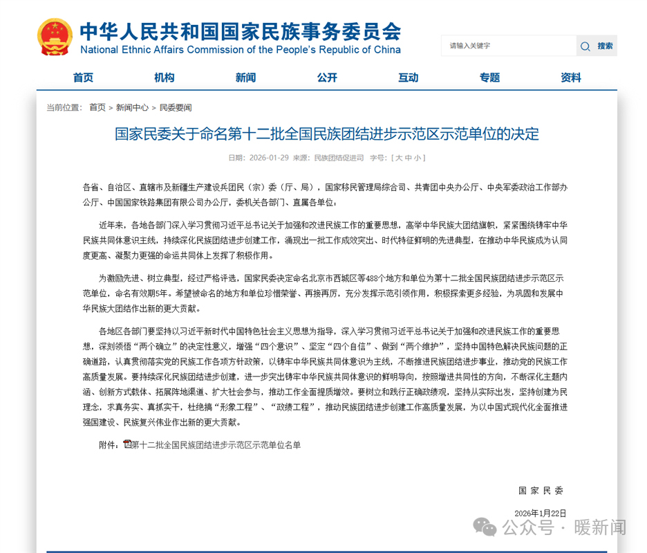 今天(1月29日),國(guó)家民委印發(fā)《關(guān)于命名第十二批全國(guó)民族團(tuán)結(jié)進(jìn)步示范區(qū)示范單位的決定》,命名488個(gè)第十二批全國(guó)民族團(tuán)結(jié)進(jìn)步示范區(qū)示范單位,鄂爾多斯市、內(nèi)蒙古電力(集團(tuán))有限責(zé)任公司鄂爾多斯供電分公司榜上有名。