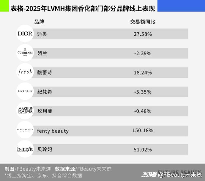 一方面,Dior彩妝、香氛與護(hù)膚,以及LV全新上線的香水彩妝等,憑借強(qiáng)新品節(jié)奏、強(qiáng)內(nèi)容表達(dá)與品牌勢能,仍能在聲量與銷售上增長。