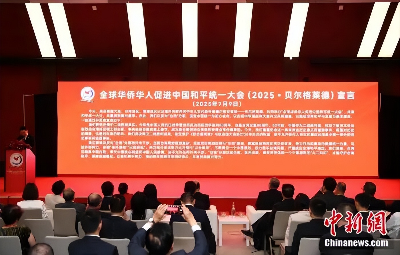 2025年7月9日,全球華僑華人促進中國和平統(tǒng)一大會在塞爾維亞貝爾格萊德舉行,來自祖國大陸、港澳臺地區(qū)及五大洲近60個國家和地區(qū)的80多家統(tǒng)促會及相關(guān)組織共400多名代表出席,共襄反“獨”促統(tǒng)盛舉。