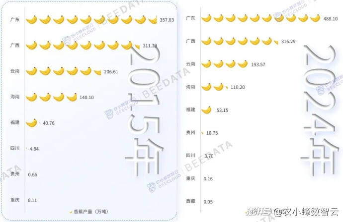 2024年,我國香蕉產(chǎn)量排名前三省域依次為廣東、廣西、云南;