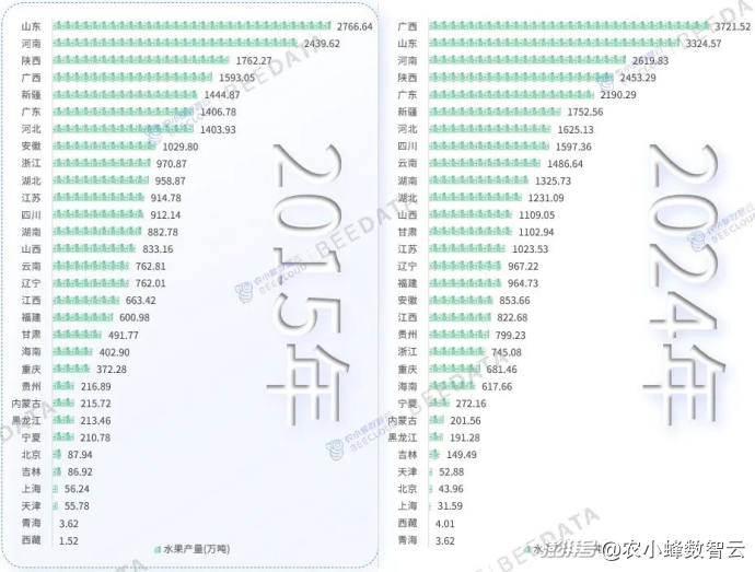 圖表4:中國園林水果產(chǎn)量布局對(duì)比(2024年VS2015年)
