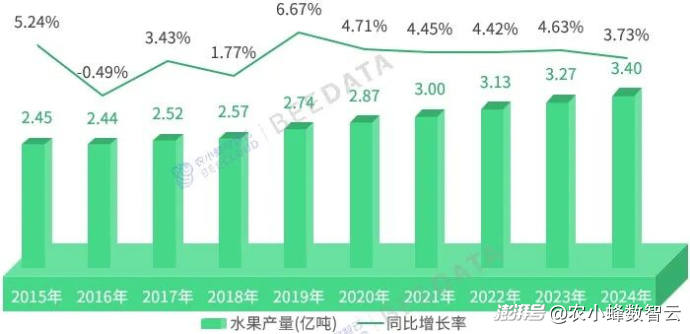 據(jù)國家統(tǒng)計(jì)局?jǐn)?shù)據(jù)顯示,2024年,我國水果產(chǎn)量為3.4億噸;