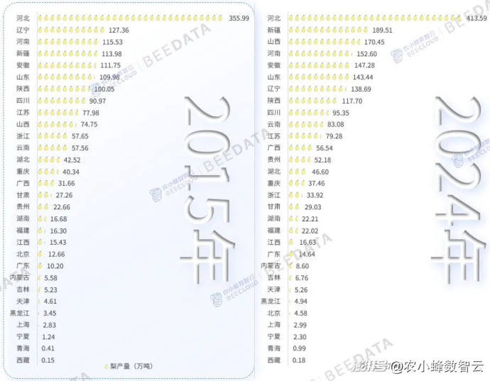 2024年,我國梨生產(chǎn)主要集中在河北、新疆、山西等省域;