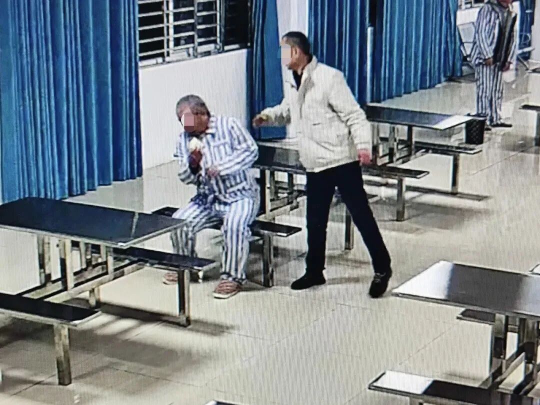 2025年12月17日早晨,湖北襄陽宏安精神病醫(yī)院的一名護(hù)工正在扇一名病人耳光。圖片來源:新京報