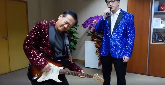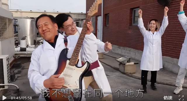 十余年來,這些視頻從簡(jiǎn)單的歌舞演繹,變成了融合搖滾、說唱、情景劇的“賀歲大片”,每一個(gè)創(chuàng)意都由學(xué)生主導(dǎo),王曉東全力支持,不僅當(dāng)“藝術(shù)總監(jiān)”,親自過腳本,還領(lǐng)舞、領(lǐng)唱、當(dāng)主角,陪著年輕人一起各種“搞怪整活”:跟著魔性旋律扭腰擺胯,復(fù)刻經(jīng)典舞蹈動(dòng)作,踩著卡點(diǎn)精準(zhǔn)抖肩,全程表情到位、動(dòng)作絲滑,被網(wǎng)友戲稱“科研界跳舞扛把子”“學(xué)術(shù)界舞王”;戴墨鏡飾演“終極大Boss”,拿魔法棒當(dāng)天使,扛玩具槍當(dāng)戰(zhàn)神……他的扮演毫無“偶像包袱”“相當(dāng)豁得出去”。最出圈的是2022年的《科研版苦行僧》,彼時(shí)北生所因“NIBS”的簡(jiǎn)寫被科研人笑稱“尼布寺”,王曉東大方認(rèn)領(lǐng)“方丈”身份,背著尿素袋演起科研“苦行僧”,還抱著電吉他在天臺(tái)忘情彈奏,畫風(fēng)清奇又戳中人心。更驚艷的是最后的彩蛋硬核說唱,一段《曉東RAP》全程零NG一氣呵成,詞句搞笑又充滿哲理。最新年度視頻里,他再度突破自我(實(shí)則是“AI曉東”傾情獻(xiàn)唱),以一首《最想讓你畢業(yè)的人是我》魔性演唱結(jié)尾,“科研征程道阻且艱,影響因子過眼云煙,愿你歸來雖不是少年,仍有一雙求知的眼……”道出了身為導(dǎo)師的溫柔期許。