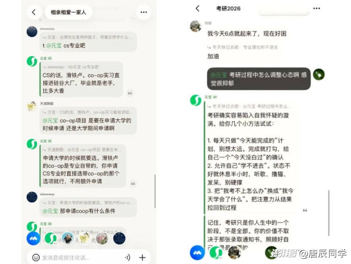 有人把家族群轉(zhuǎn)移到了元寶派,長(zhǎng)輩平時(shí)轉(zhuǎn)發(fā)一些偽科學(xué)養(yǎng)生文章,就可以一鍵@元寶辟謠。還有人創(chuàng)建了打卡讀書派,大家各自聊每天看了什么書,有什么感悟,遇到不理解的內(nèi)容,可以跟派互動(dòng)請(qǐng)教。