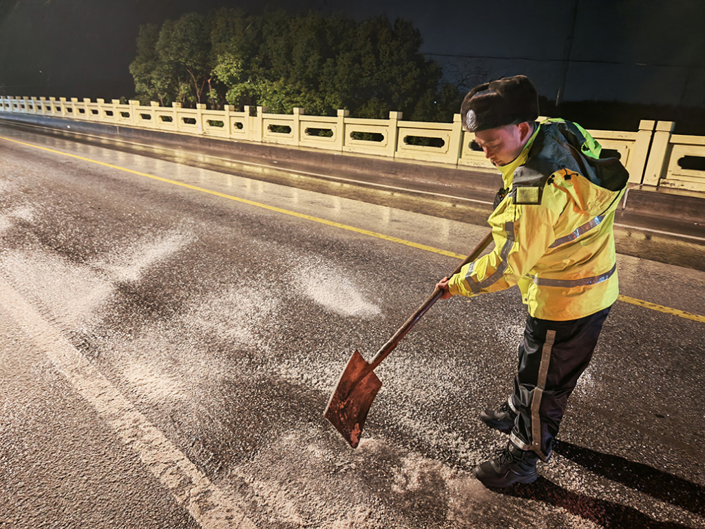 為確保在低溫寒潮天氣下道路安全有序,上海公安交管部門(mén)提前部署鋪設(shè)防滑墊、撒融雪劑等預(yù)防性措施,加強(qiáng)交通秩序管理,全方位落實(shí)應(yīng)對(duì)預(yù)案。針對(duì)此輪強(qiáng)冷空氣來(lái)襲,交管部門(mén)增設(shè)警力,提高巡邏頻次,在前期對(duì)全市易結(jié)冰路段進(jìn)行全面排摸的基礎(chǔ)上,對(duì)高架、高速道路以及地面道路的低洼處、積水點(diǎn)進(jìn)行巡查,及時(shí)消除安全隱患,快速處置各類(lèi)突發(fā)問(wèn)題。同時(shí),全面強(qiáng)化與路政、養(yǎng)護(hù)等部門(mén)的聯(lián)勤聯(lián)動(dòng),備足應(yīng)急物資,確保城市交通網(wǎng)絡(luò)暢通有序。