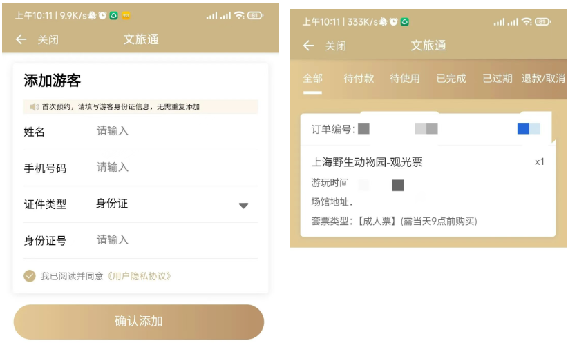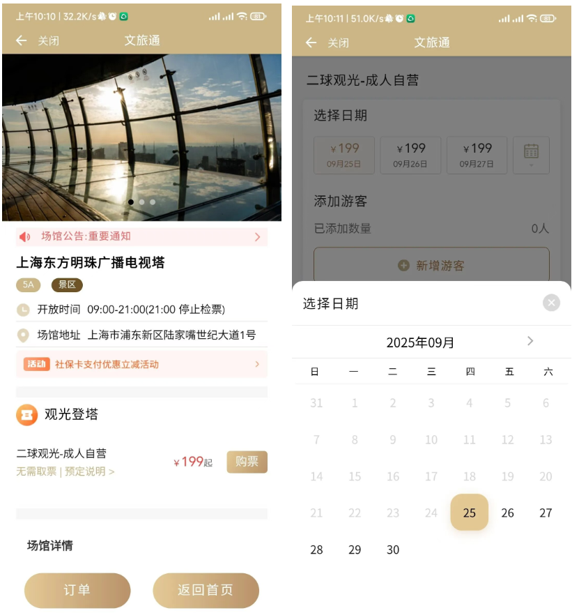 在景點(diǎn)詳情頁點(diǎn)擊“購票”,進(jìn)入購票頁面選擇參觀日期,然后點(diǎn)擊“新增游客”選項(xiàng),輸入游客信息后,即可完成購票。
