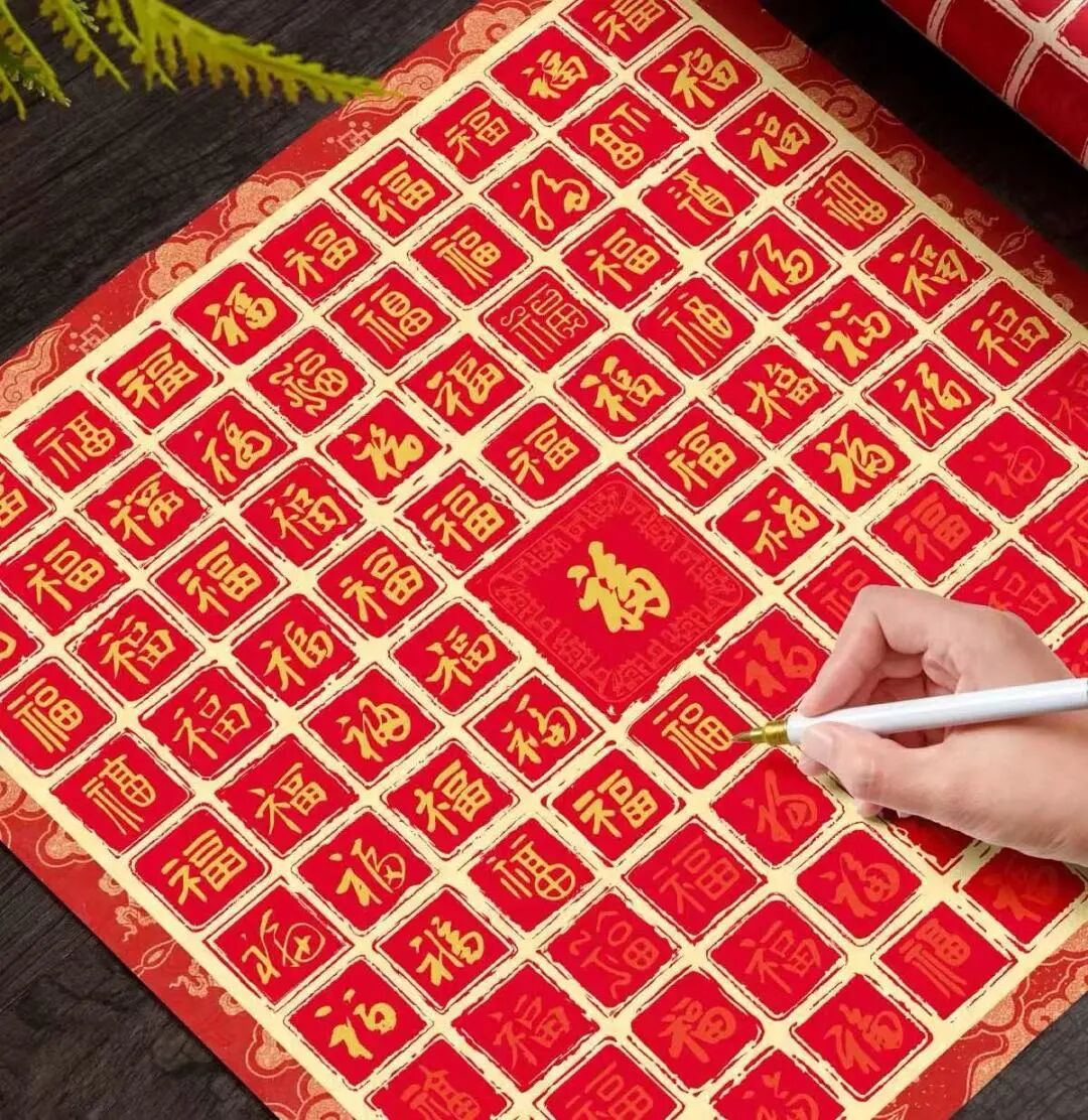 共寫百福:在“?!弊之嫾埳?,書寫不同字體的“?!弊?,開啟福氣馬年。