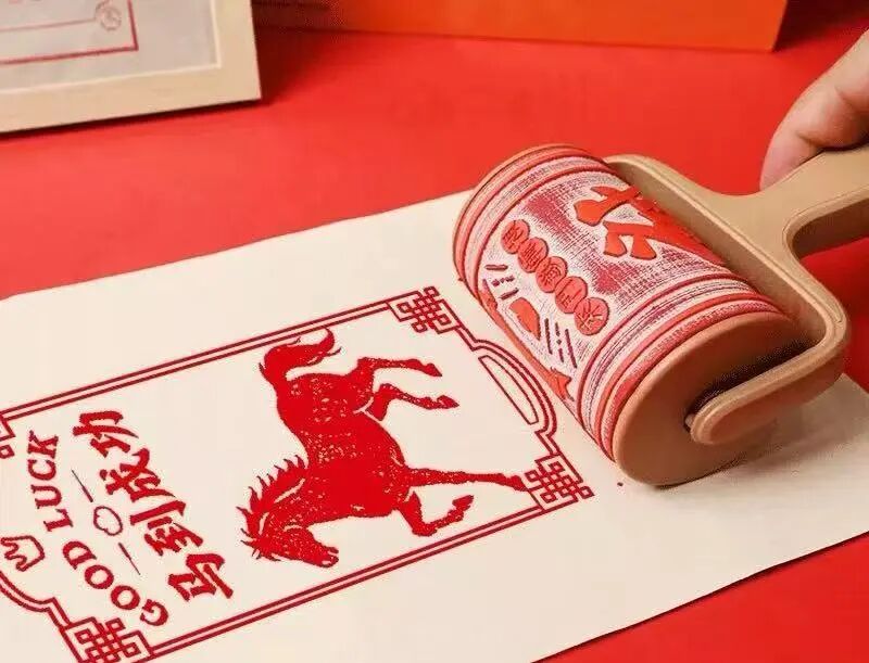 拓印年畫:使用傳統(tǒng)木版年畫模板與紅金宣紙,拓印專屬馬年主題年畫。