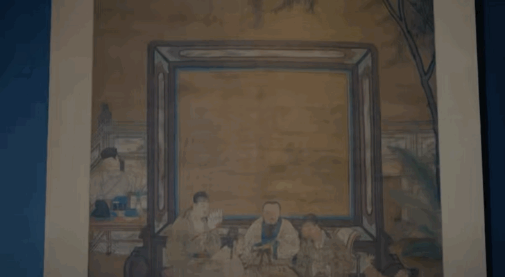 仿古銅器不僅承載著人們對于上古時代的追慕,更融入了當時文人的審美意趣。它們悄然走入文人的書房,在那片獨屬于自己的精神世界里,仿古銅器不僅是工藝的傳承,更成了文化與情感的延續(xù)。本次展出的《十八學士圖屏(棋圖)》,就生動表現了文人風雅的生活場景,畫中陳設的香爐、花瓶器型秀雅,紋飾樸拙,可見古銅器元素已融入當時的生活日常,體現了當時的崇古之風。