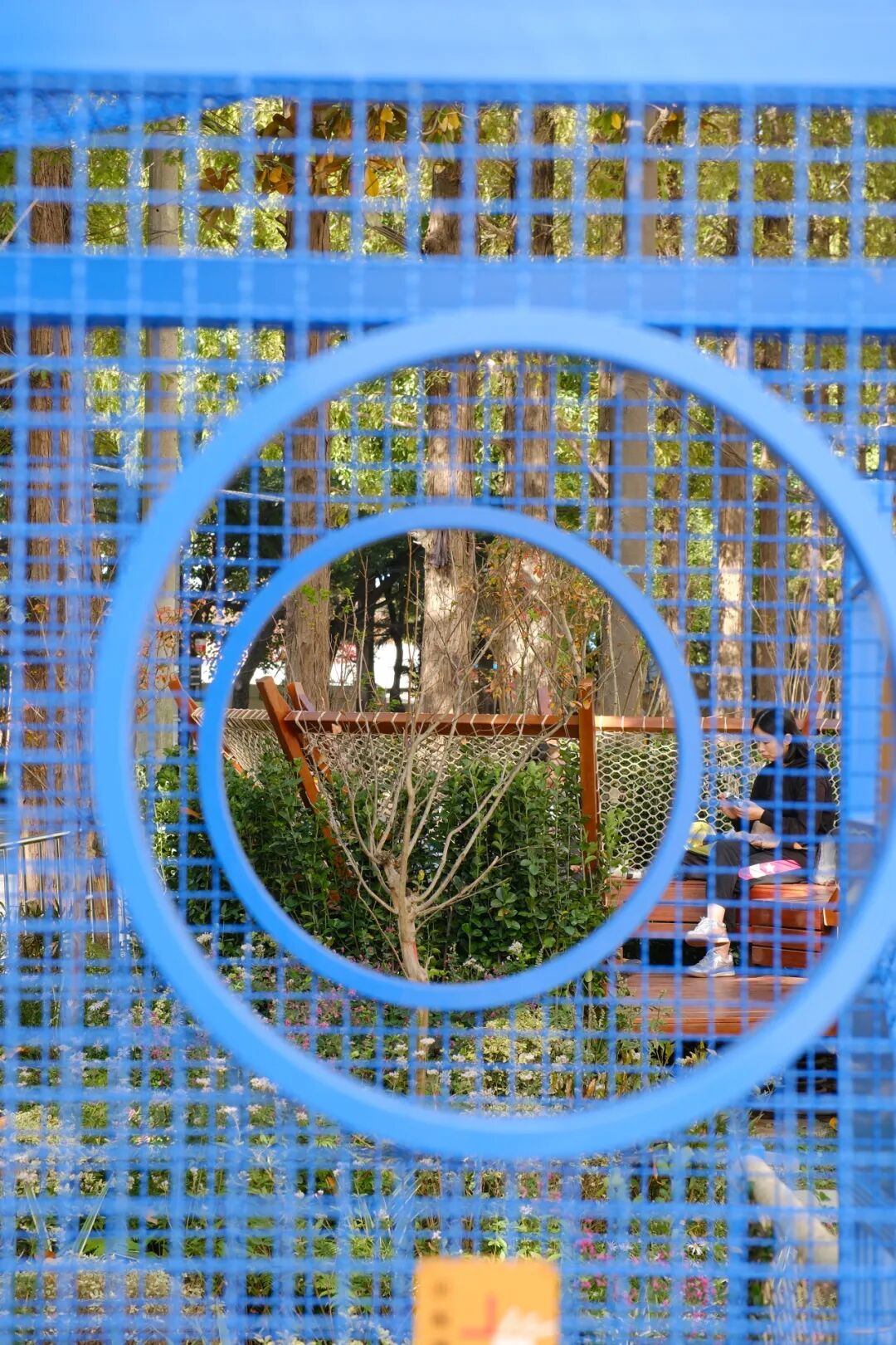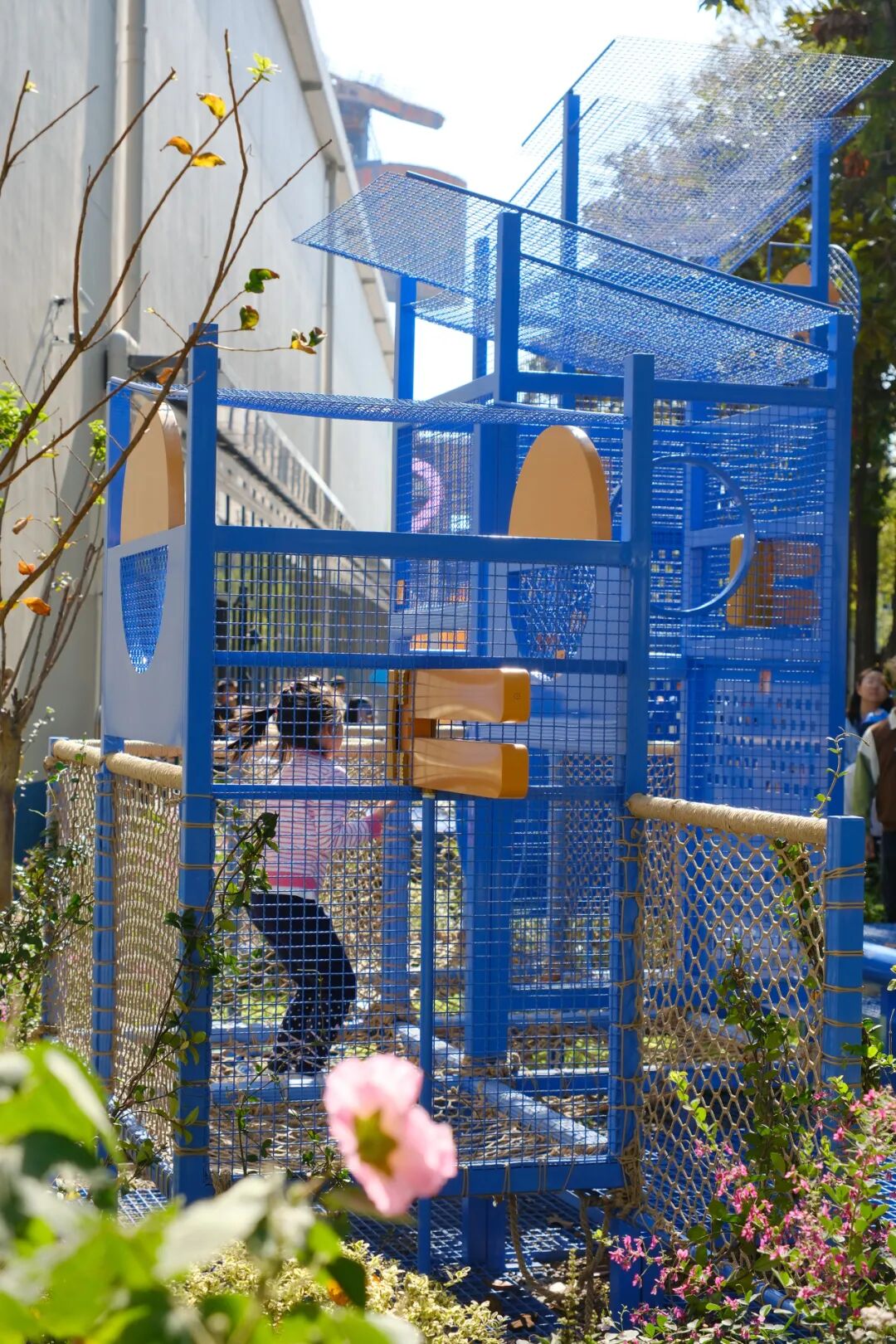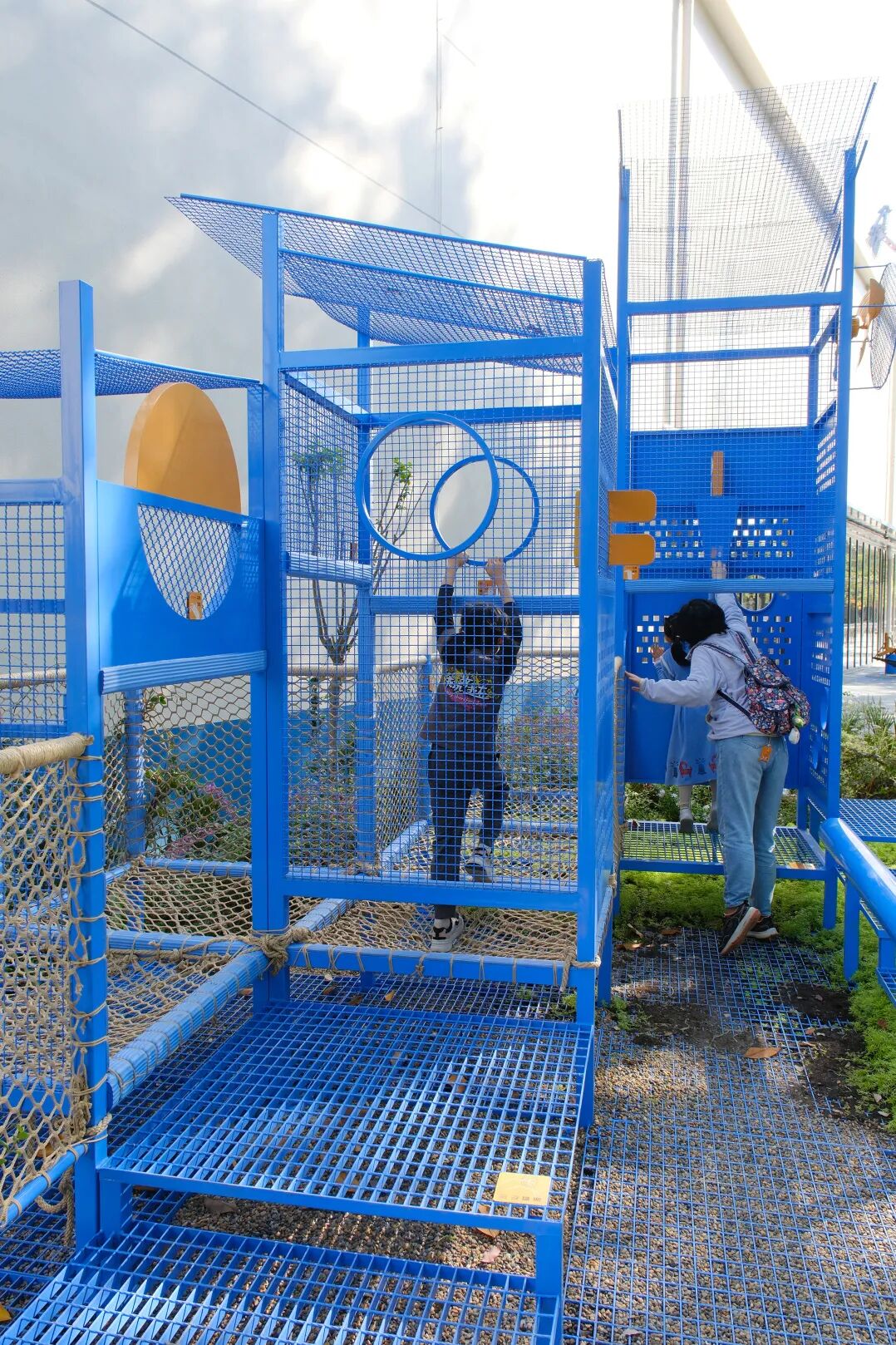 構(gòu)樹穿繞在藍(lán)色金屬線條之間