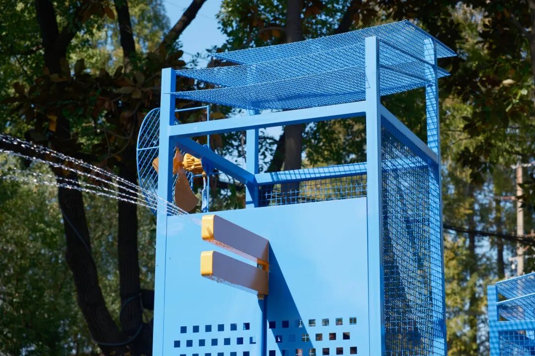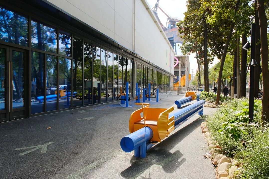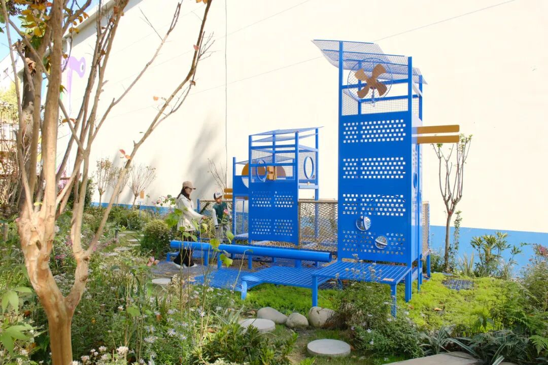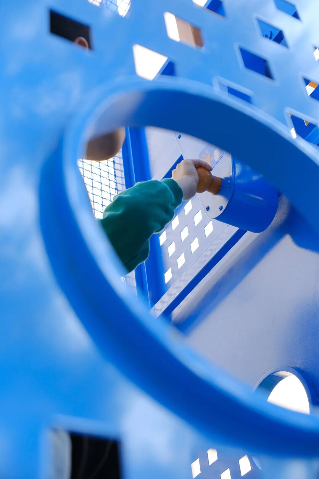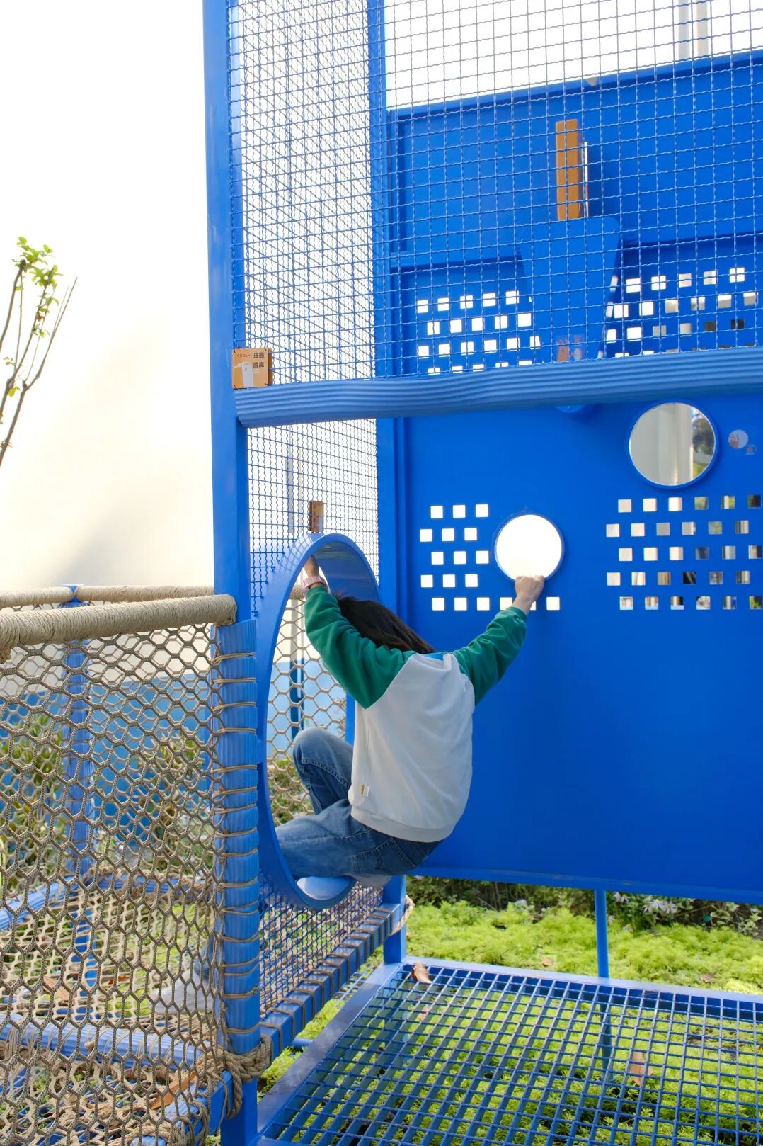 構(gòu)樹穿繞在藍(lán)色金屬線條之間