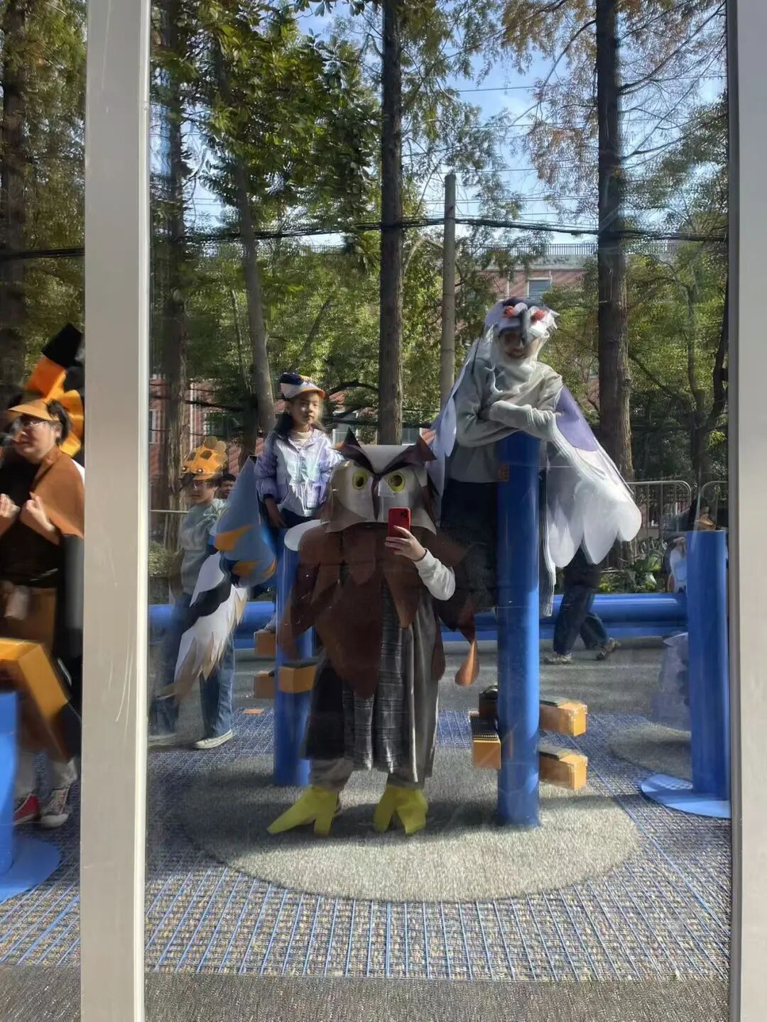 扮演小鳥的大小朋友,會(huì)偷偷來找大頭貓頭鷹“合影”
