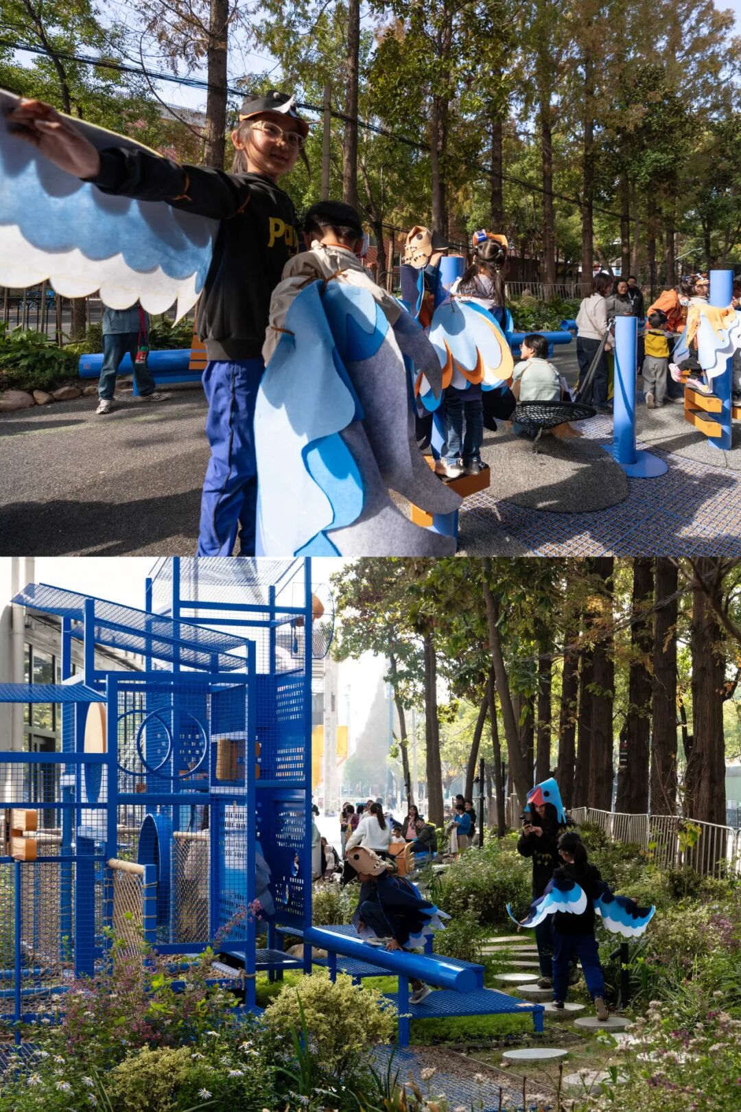 《復(fù)興鳥》航拍,藍(lán)色是互動(dòng)游戲裝置 ? 劉國(guó)威