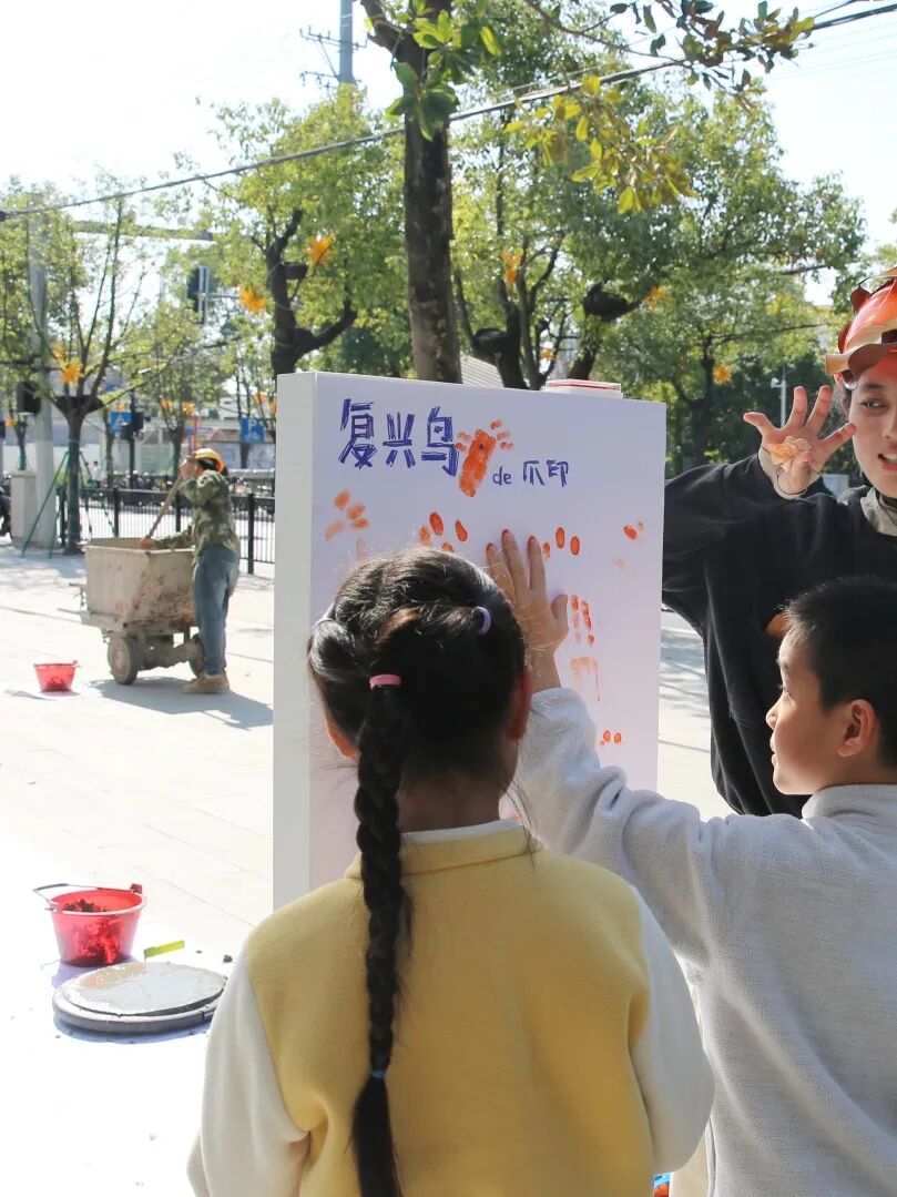 小朋友很樂意在“復(fù)興鳥”留下他們特別的爪印
