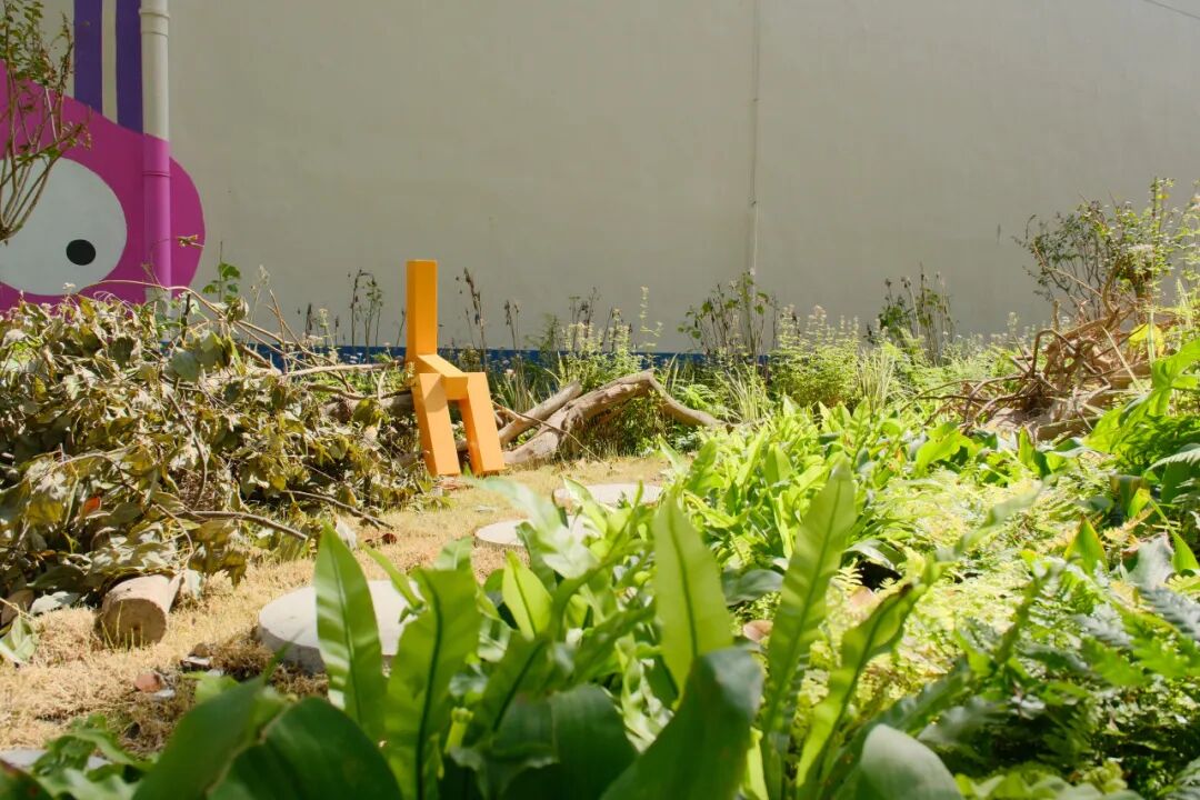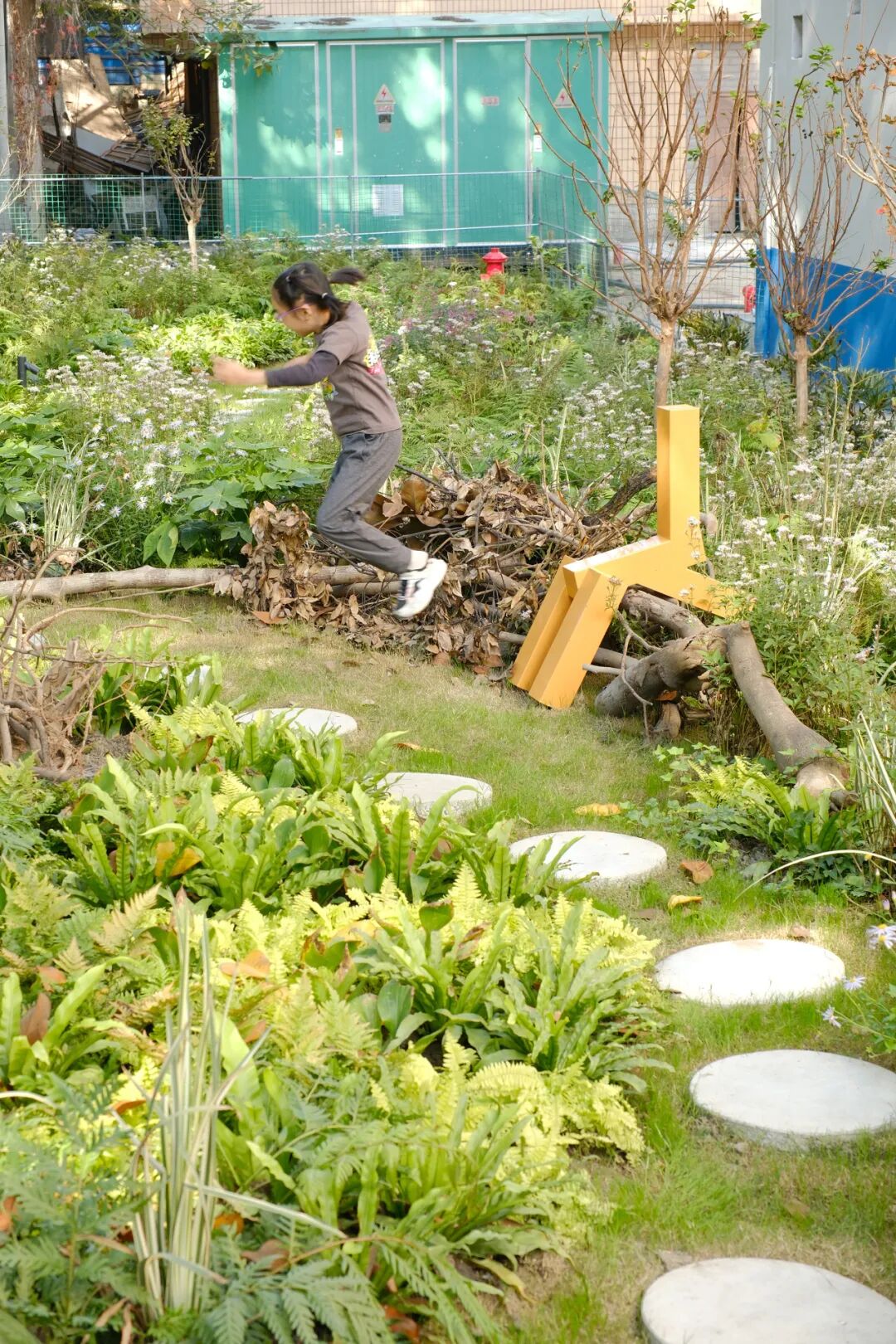 花園里堆放了幾組在場(chǎng)地中回收的枯木斷枝