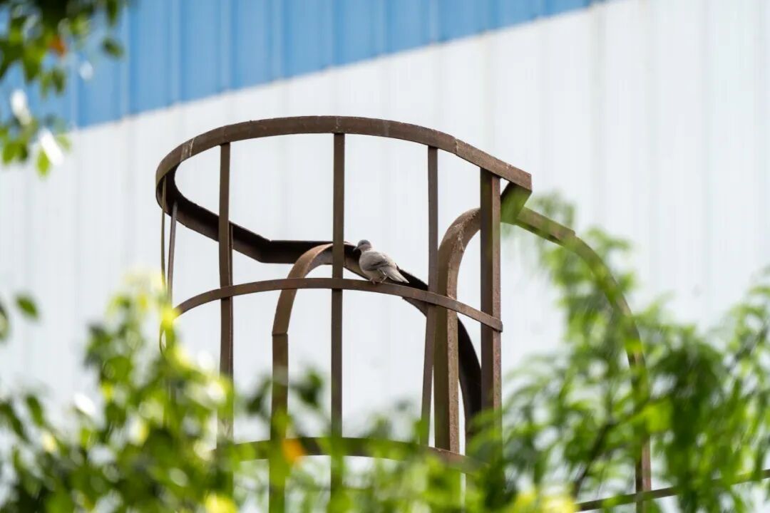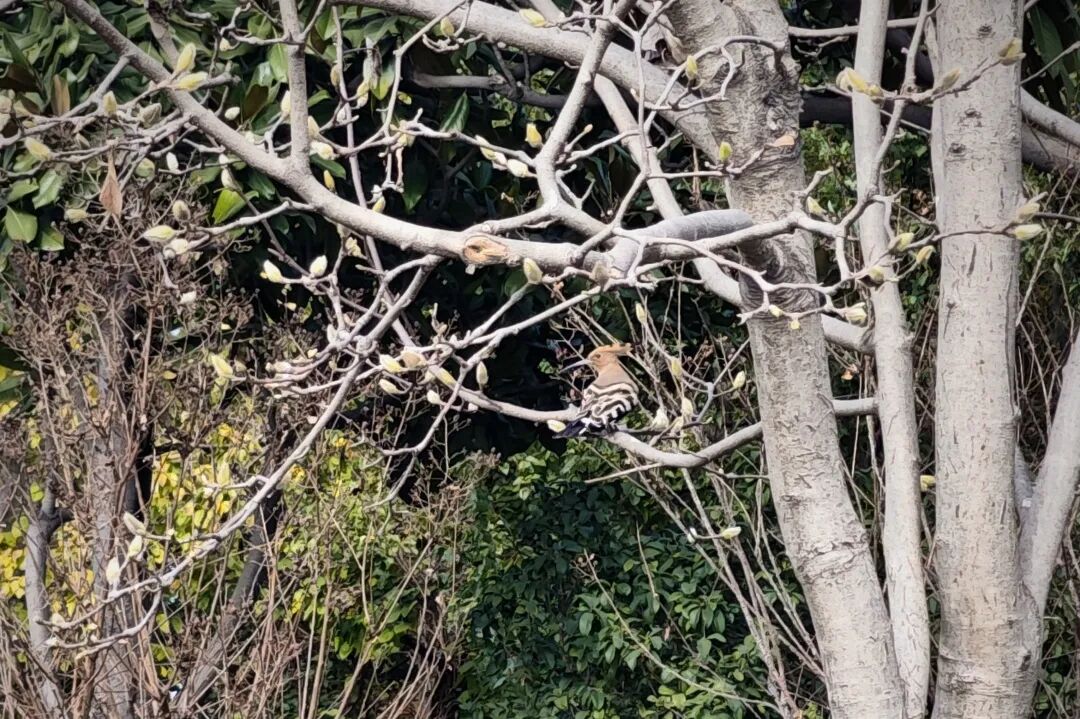 《復(fù)興鳥》作品建成后,白頭鵯在廣玉蘭樹上歪著頭看