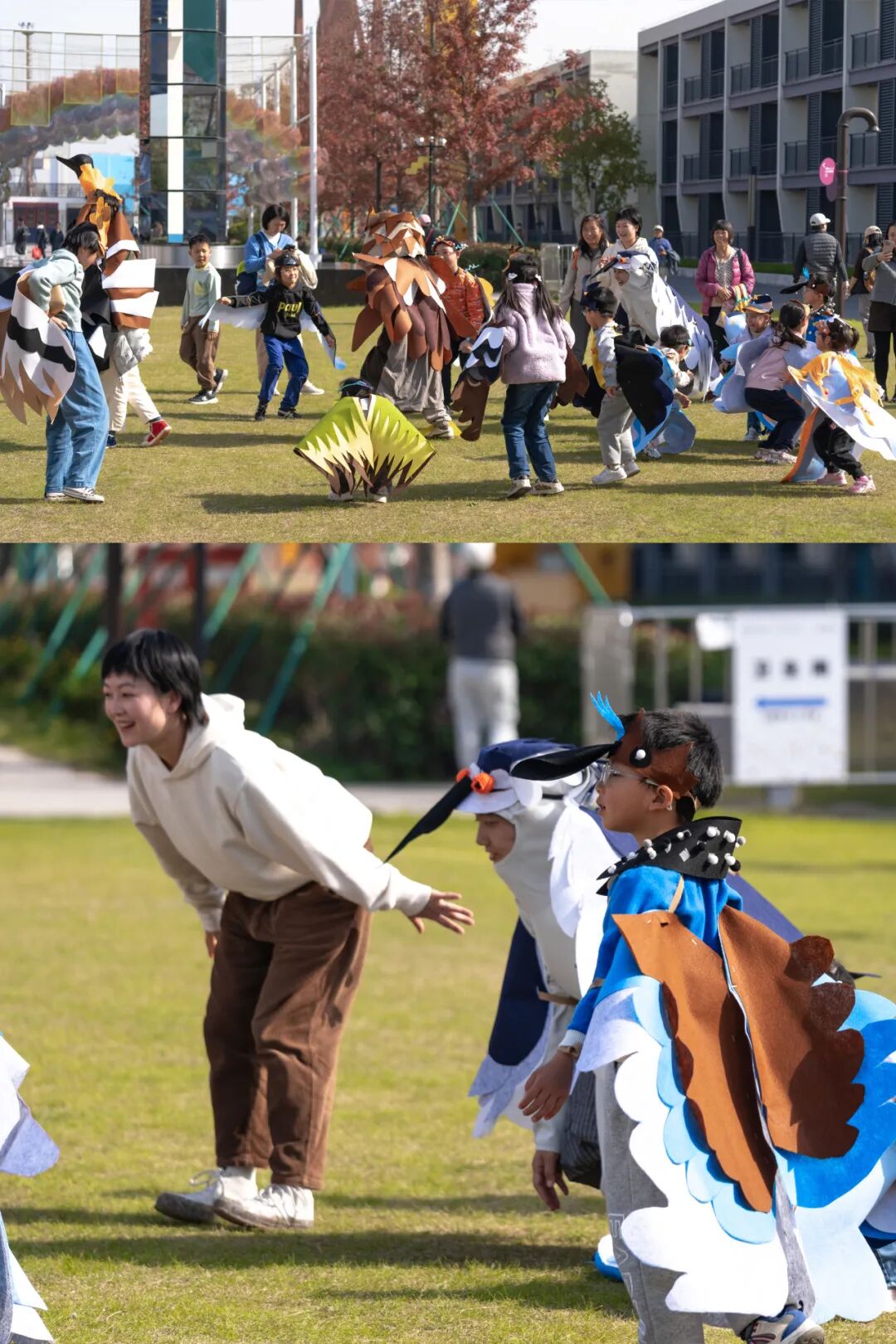 兩位設(shè)計(jì)師扮演夜鷺和雕鸮,給小朋友講述復(fù)興鳥的故事