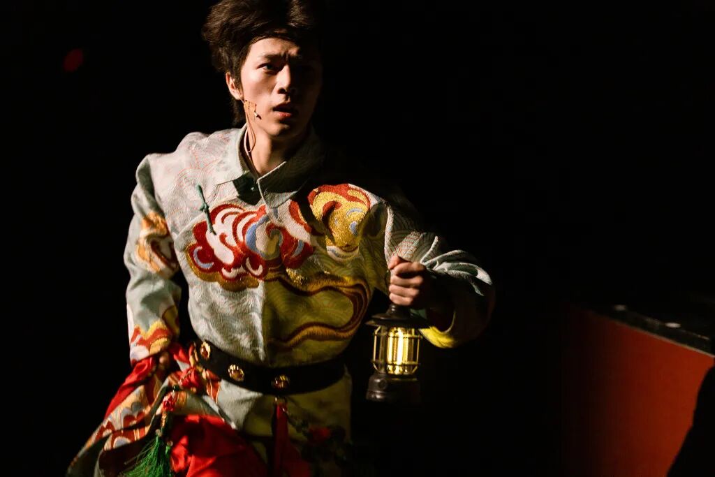 青年演員李其炫飾演的清代名醫(yī)徐靈胎,則是整部戲的“天問者”與時(shí)空導(dǎo)游。全劇以他提著燈,從觀眾席中走出開場(chǎng),“我是徐靈胎!我想問問你們,我想問問我自己以后的路!”以戲劇行動(dòng)打破了劇場(chǎng)慣見的“第四堵墻”,直接將觀眾帶入這場(chǎng)千年追問。
