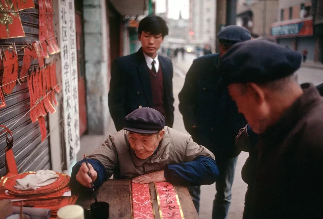 1993年新春前夕,閘北區(qū)一處弄堂口,一位長(zhǎng)者正在書寫楹聯(lián)