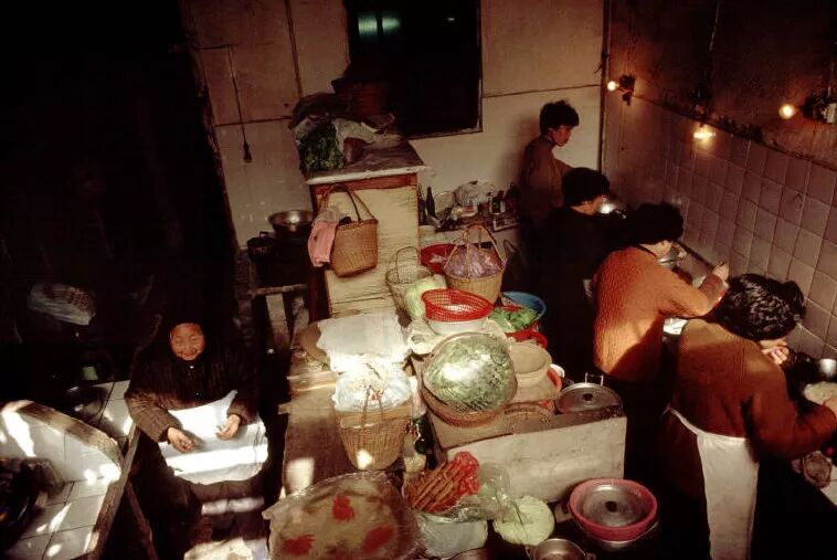 1993年,上海一處弄堂灶間里,鄰舍間一邊嘎訕胡,一邊準(zhǔn)備年夜飯,充滿了濃濃的年味和生活情趣。
