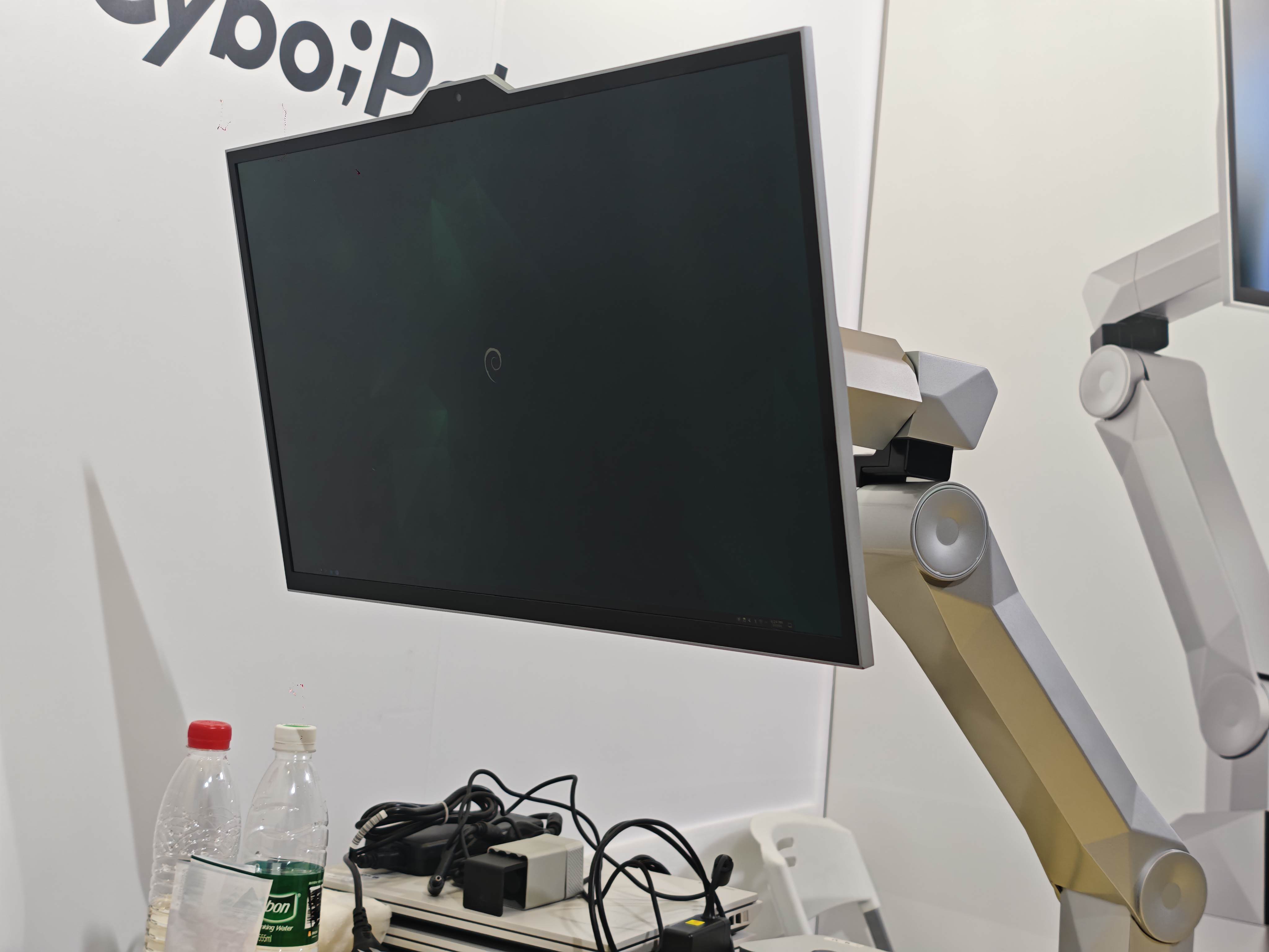 不過(guò),這種形態(tài)距離真正普及顯然還有不少挑戰(zhàn)。至少現(xiàn)場(chǎng)來(lái)看,CyboPal ONE 的屏幕顯示表現(xiàn)遠(yuǎn)差于普通顯示器,霧面屏加上極差的可視角度,你都可想而知。另一方面,機(jī)械臂的反應(yīng)也比較遲鈍,機(jī)械臂上的攝像頭也容易被屏幕遮擋,無(wú)法跟隨。