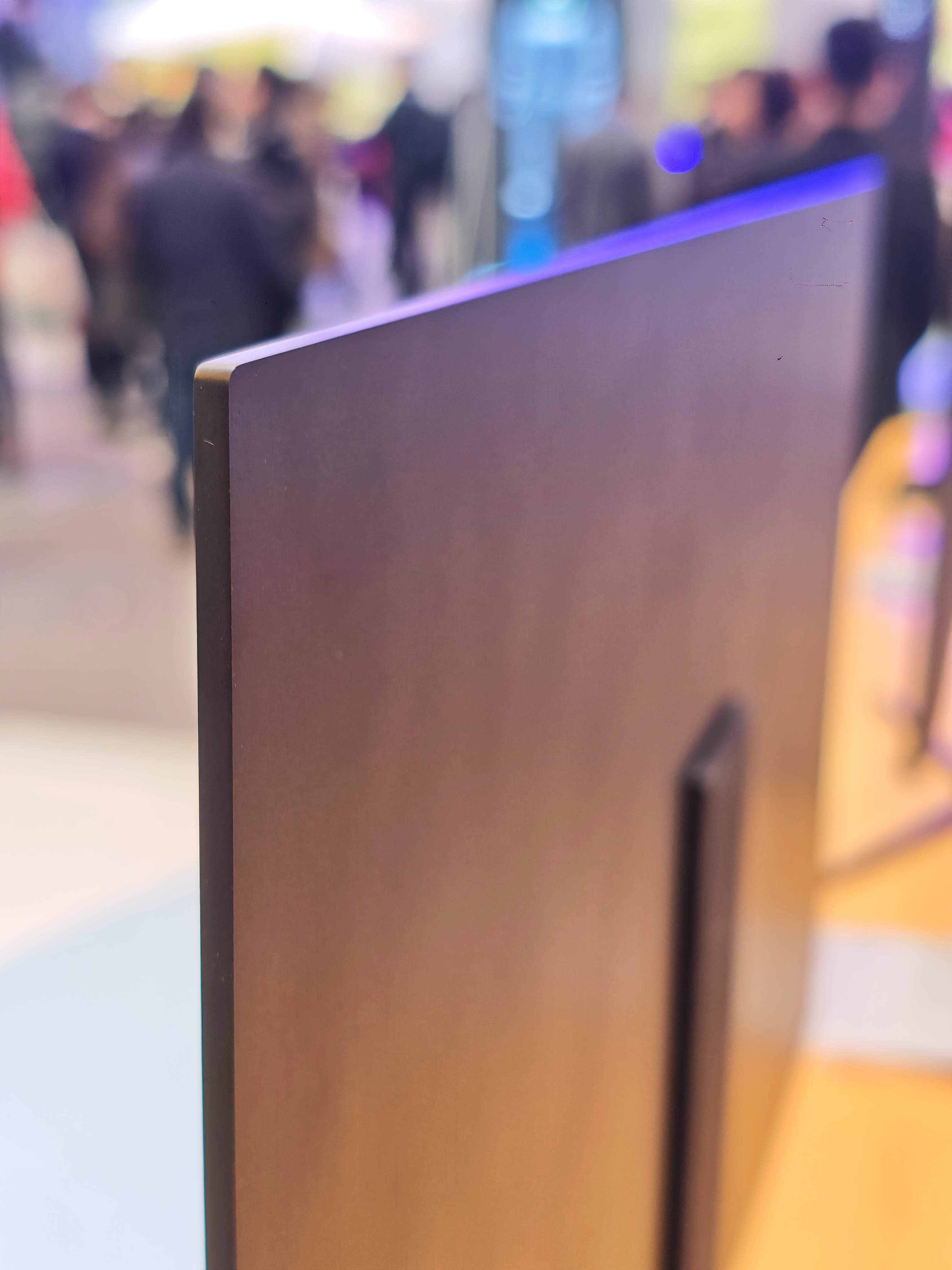 另一款產(chǎn)品則是全球最薄 LCD 顯示器。通過(guò)對(duì)背光結(jié)構(gòu)和光學(xué)層的重新設(shè)計(jì),TCL 華星把 LCD 顯示器的厚度壓縮到極低水平,視覺(jué)上幾乎像一塊玻璃。雖然這類產(chǎn)品還處于技術(shù)展示階段,但它透露出 LCD 顯示器的另一個(gè)不同于 Mini LED 的產(chǎn)品和技術(shù)迭代方向。