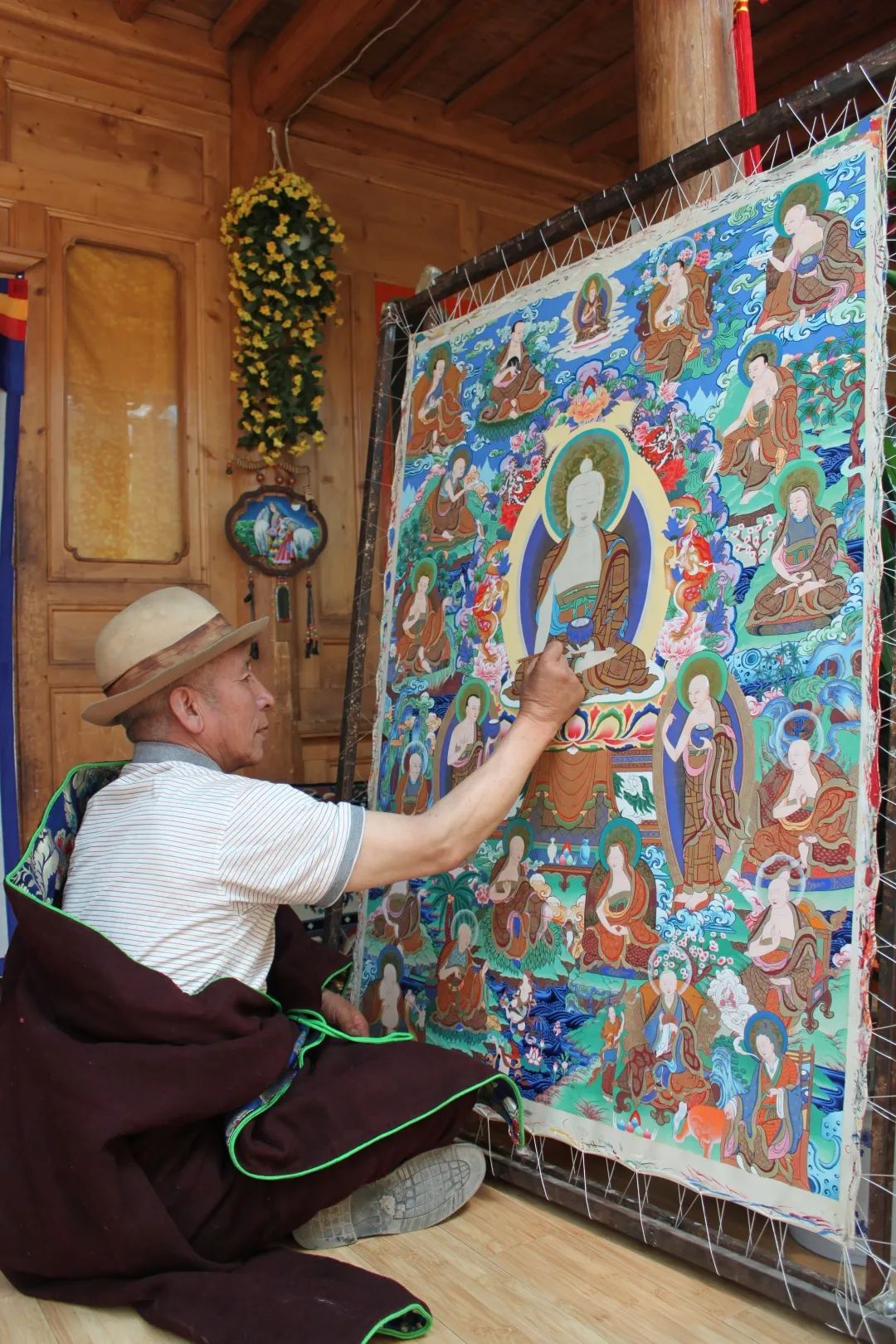 斗尕繪制作品《釋迦摩尼與十八羅漢》