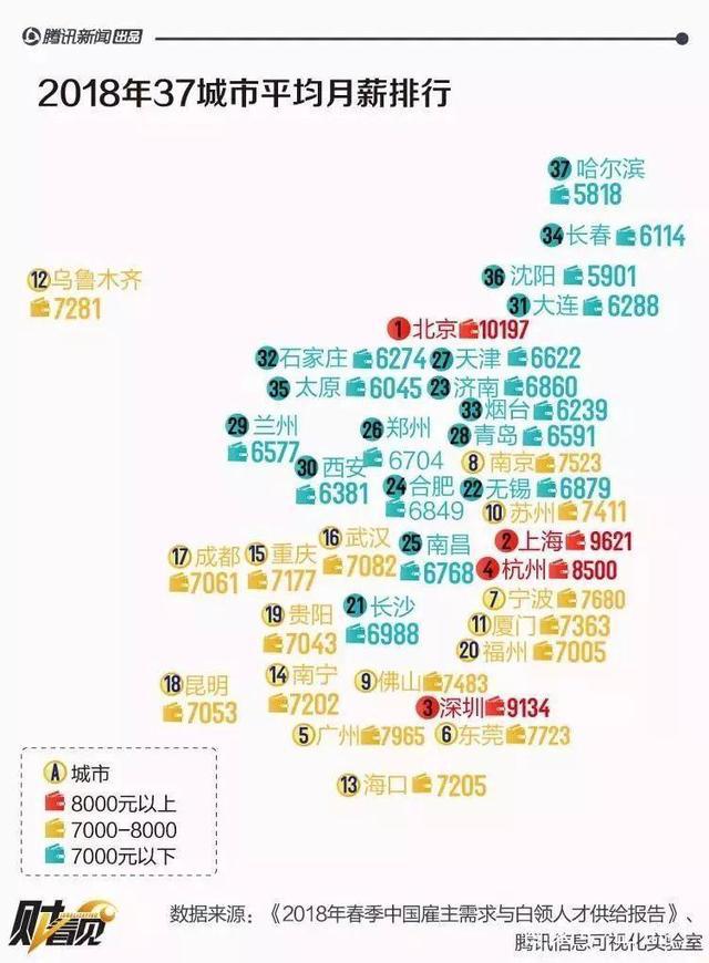 這里面最大的原因,無外乎中西部的發(fā)展跟上來了。從一份白領(lǐng)平均月薪的報告可以看出(這是2018年的數(shù)據(jù),圖比較直觀,2019年其實也差不多),中西部地區(qū)特別是西南的白領(lǐng)月薪已經(jīng)在全國居于中高位了。