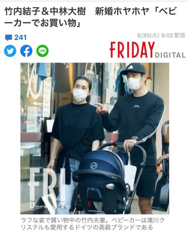 在2019年,竹內(nèi)結(jié)子和演員中林大樹結(jié)婚,開啟了第二段婚姻。