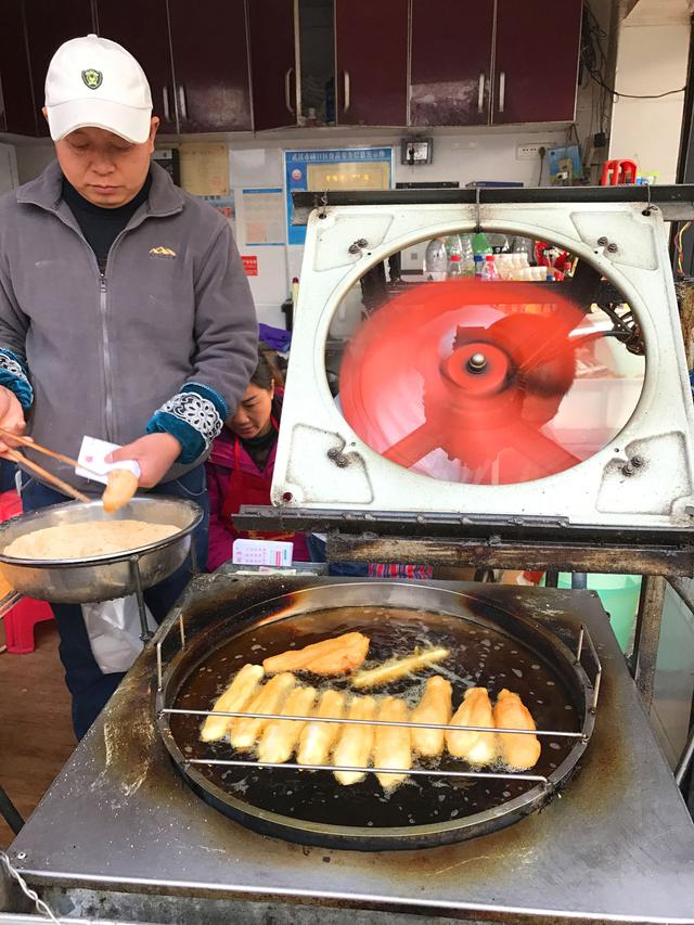 我的“遛彎”是下午四時(shí)許,從航空路立交橋北側(cè)的機(jī)場(chǎng)大巴站開(kāi)始的,往南步行到武勝路,往東穿過(guò)榮東社區(qū)里的一條東西向小街。這是小街上的炸酥餃攤。攝影/黃華