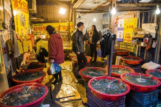 在榮東社區(qū)里的這條東西向小街上,非常誘人的是這種賣(mài)活螃蟹店。店主的廣告詞是“一只螃蟹只賣(mài)5元”,有不少當(dāng)?shù)鼐用裨谶x購(gòu)。攝影/黃華