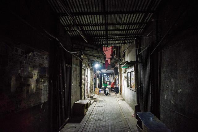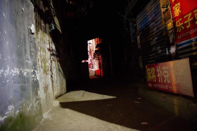 與大夾街西段明亮的夜市比,晚上多福路以東的大夾街上商鋪都關(guān)門(mén)了,街道上一片漆黑。攝影/黃華