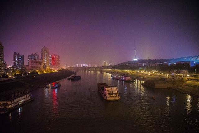 跟漢正街隔一個(gè)街區(qū),就是漢江。夜色中的漢江上,依舊是忙碌的景象。攝影/黃華